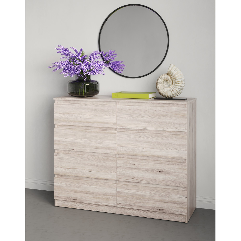 Комод виготовлений із надійного та екологічного ДСП, що відрізняється стійкістю до зношування й механічних пошкоджень. Комод на 8 ящиків ідеально підходить для спальні, вітальні, дитячої кімнати або передпокою, надаючи можливість організувати простір зі стилем.