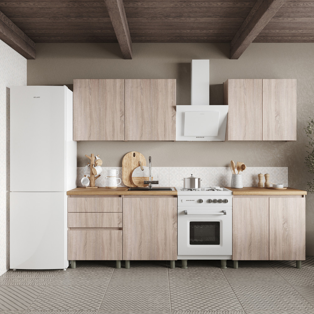 Модульна кухня MebelStar Еко розміром 2 метри в кольорі дуб сонома - це ідеальне рішення для вашого інтер’єру. Вона поєднує в собі стильний дизайн, функціональність та комфорт. Модульні кухні – це зручний спосіб створити кухню вашої мрії, поєднуючи елементи за вашим бажанням.