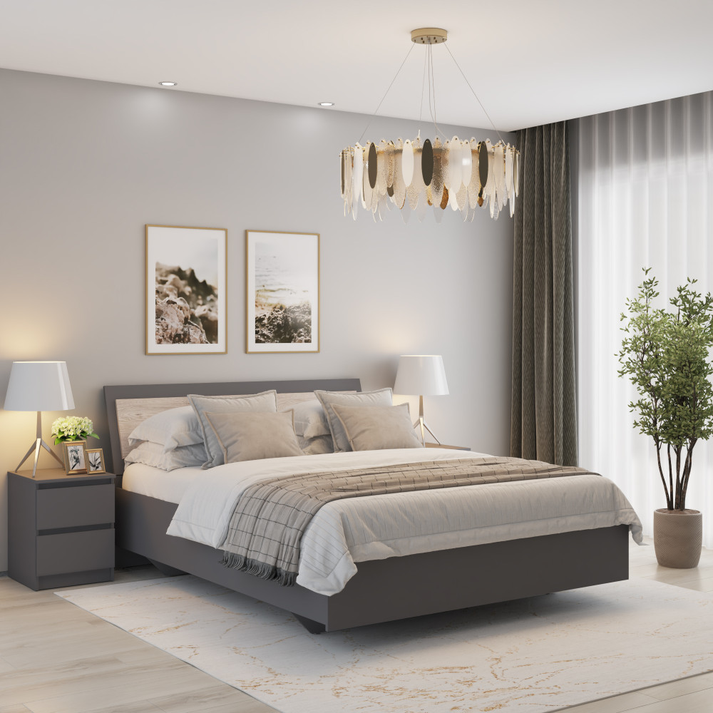 Двоспальне ліжко MebelStar "Б'янка" 160x200 см Антрацит/Аляска сірий - стиль та комфорт для спальні
