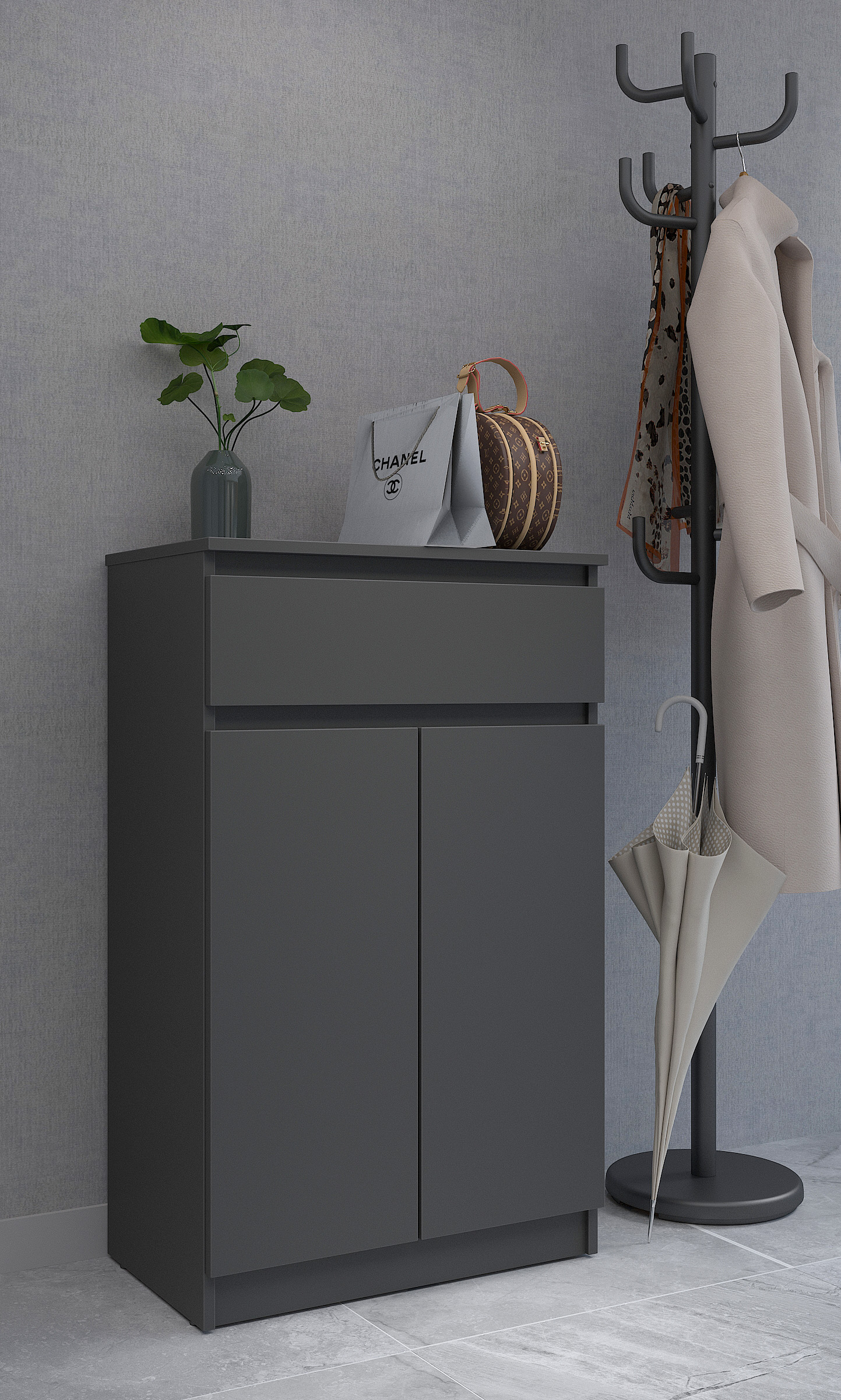 - Правильная вентиляция. Чтобы избежать неприятных запахов, выбирайте тумбы под обувь с вентиляционными отверстиями или открытыми полками. Это позволит обуви «дышать» и сохранять свежесть.