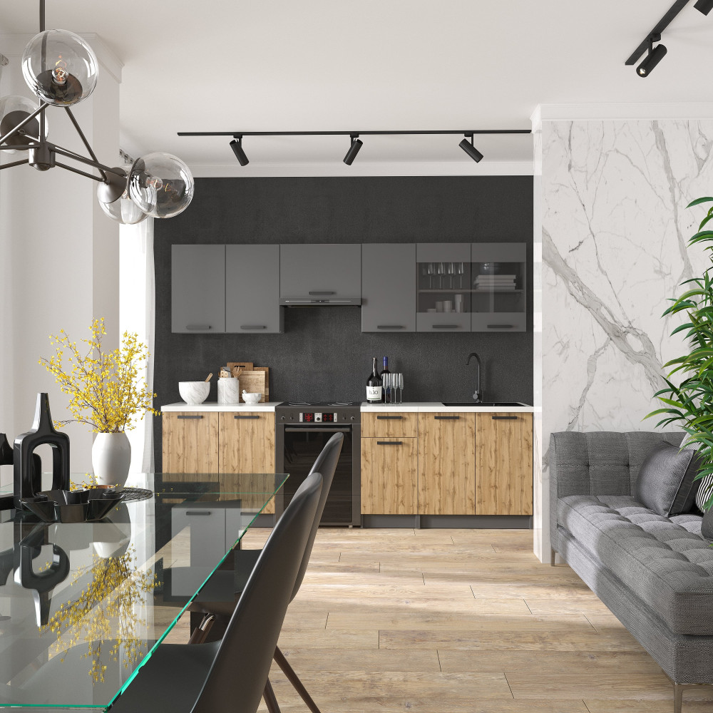 Кухня модульная MebelStar Nika 2,6 м Антрацит/Дуб тахо (MBS-1470)