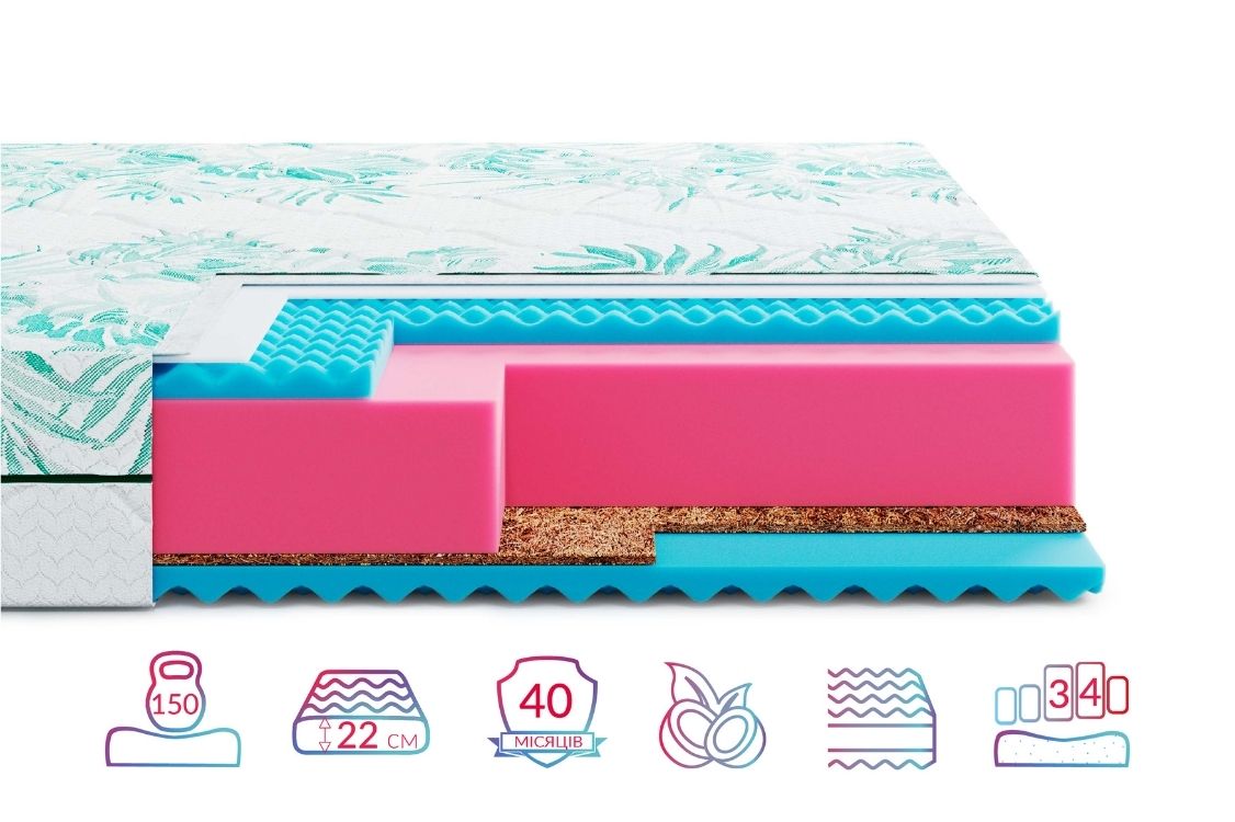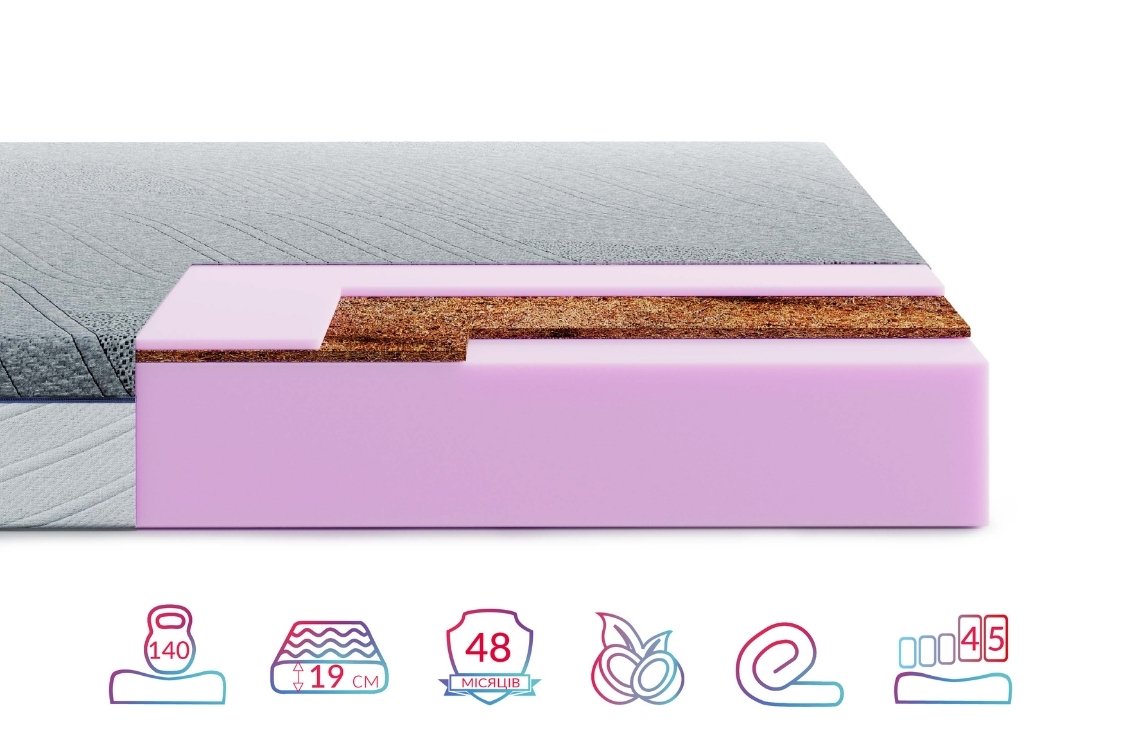 - Беспружинные матрасы – изготовлены из экологичных материалов, таких как латекс, пенополиуретан или кокосовая койра.