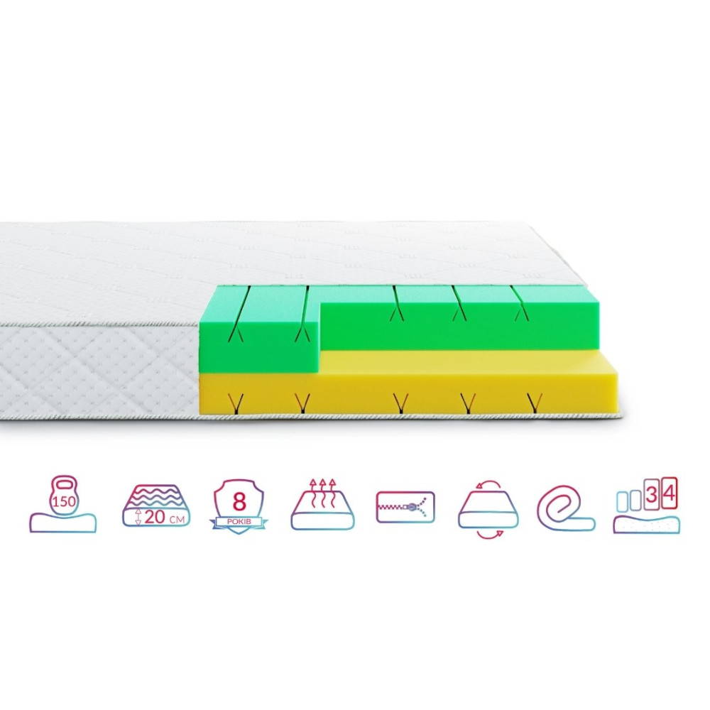 Матрас изготовлен из безопасных материалов, которые не вызывают аллергии и способствуют здоровому сну. Улучшенная вентиляция предотвращает образование избыточной влаги, а высококачественные пены гарантируют долгий срок службы.