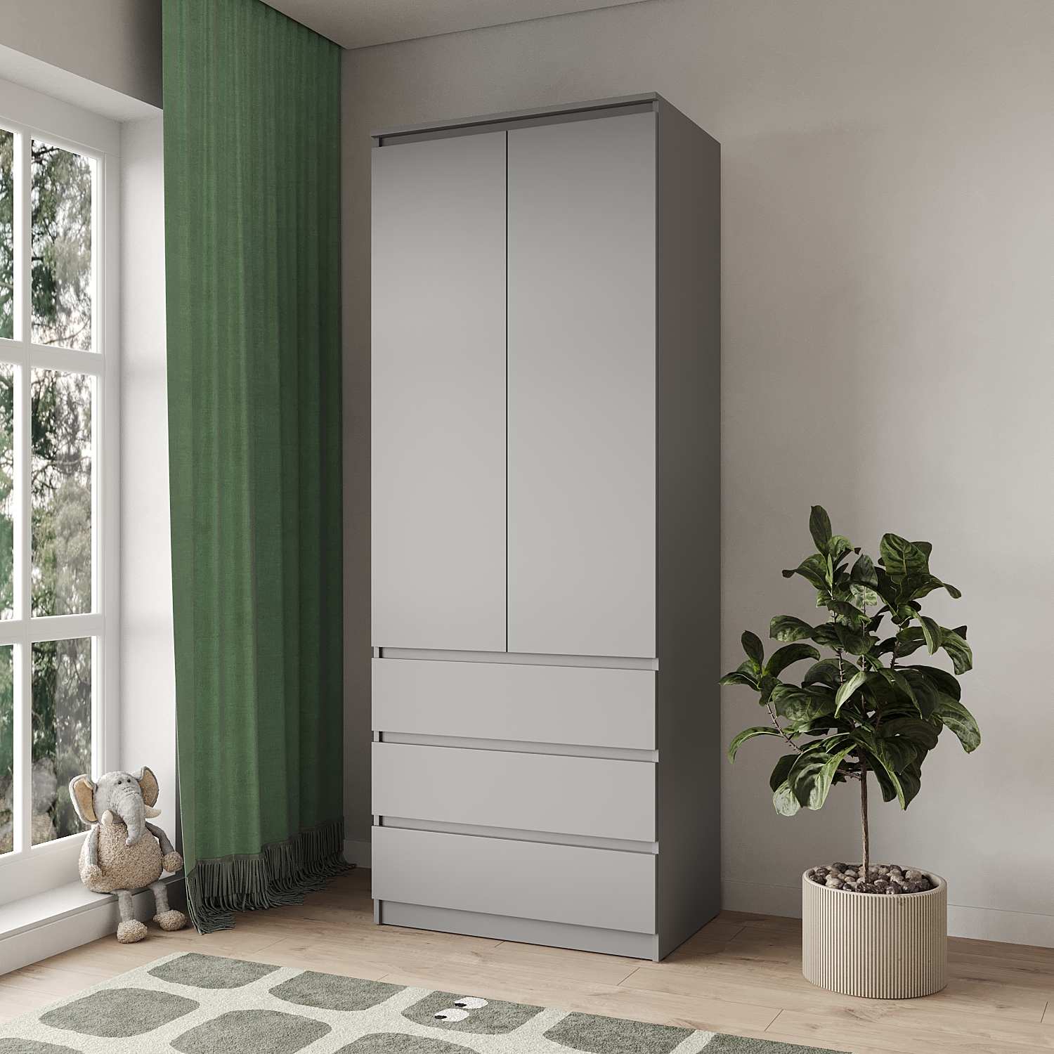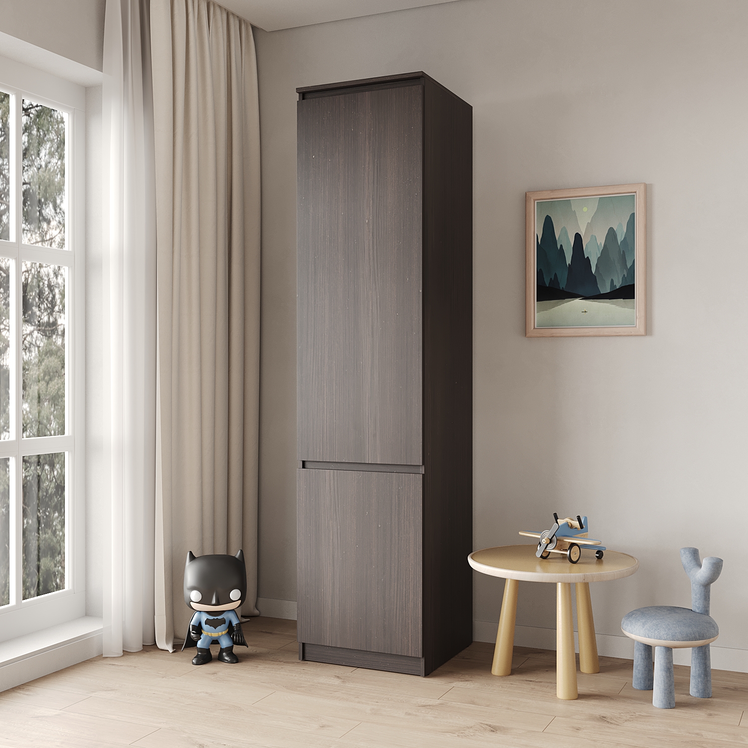 Для детской комнаты идеально подойдут небольшие шкафы с безопасными, легкими в использовании дверцами, а также ящиками на нижнем уровне для легкого доступа ребенка.