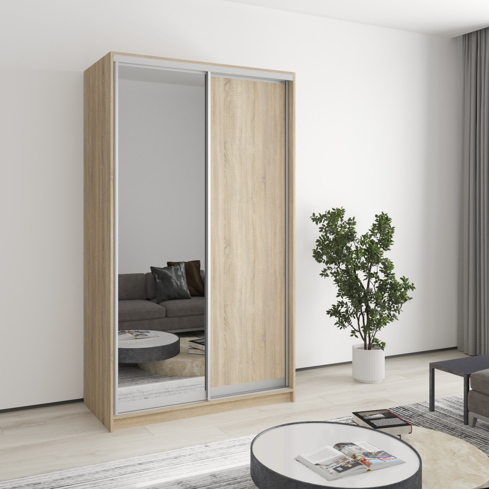 Шкаф-купе двухдверный MebelStar Уни AL ДСП/Зеркало 120x60x210 см Дуб сонома