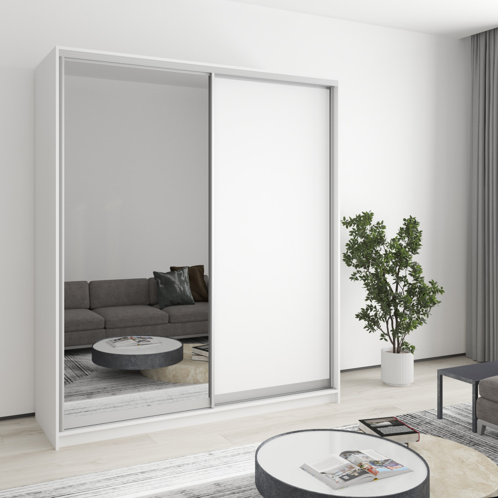 Шкаф-купе двухдверный MebelStar Уни AL ДСП/Зеркало 180x60x210 см Аляска белый (MBS-2607)