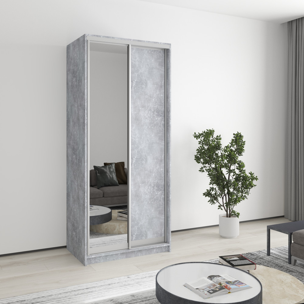 Шкаф-купе двухдверный MebelStar Уни AL ДСП/Зеркало 90x45x210 см Бетон (MBS-2626)
