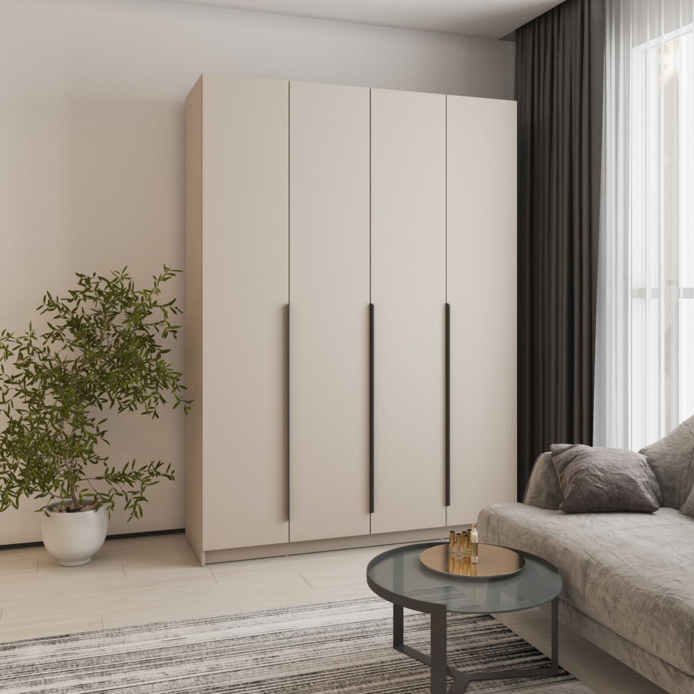 Шкаф 4-дверный MebelStar Оскар ДСП BL-B, стандарт 160x52x220 см Кашемир (MBS-4655)