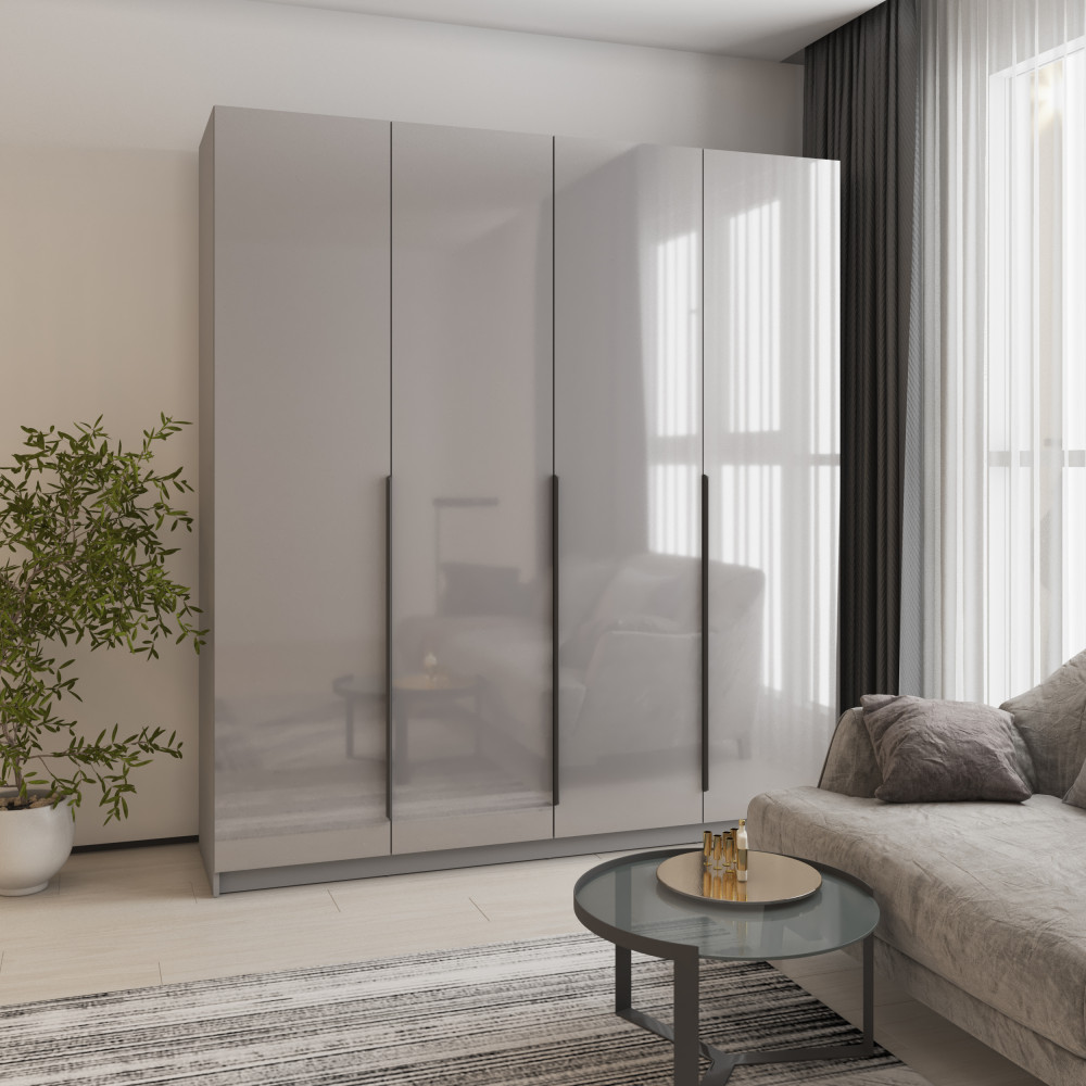 Шкаф 4-дверный MebelStar Оскар Gloss BL-B, дополнительная штанга 200x52x220 см Серая мышка/Серый (MBS-5316)