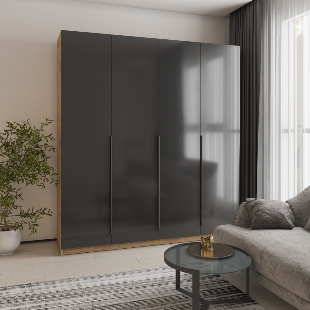 Шкаф 4-дверный MebelStar Оскар Gloss BL-B, стандарт 200x52x220 см Дуб тахо/Черный (MBS-5311)