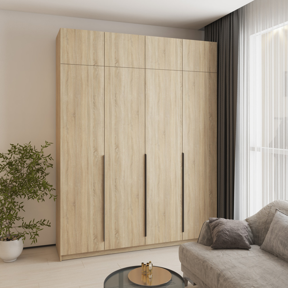 Шкаф 4-дверный с антресолью MebelStar Оскар ДСП BL-B, стандарт 200x52x260 см Дуб сонома (MBS-5057)