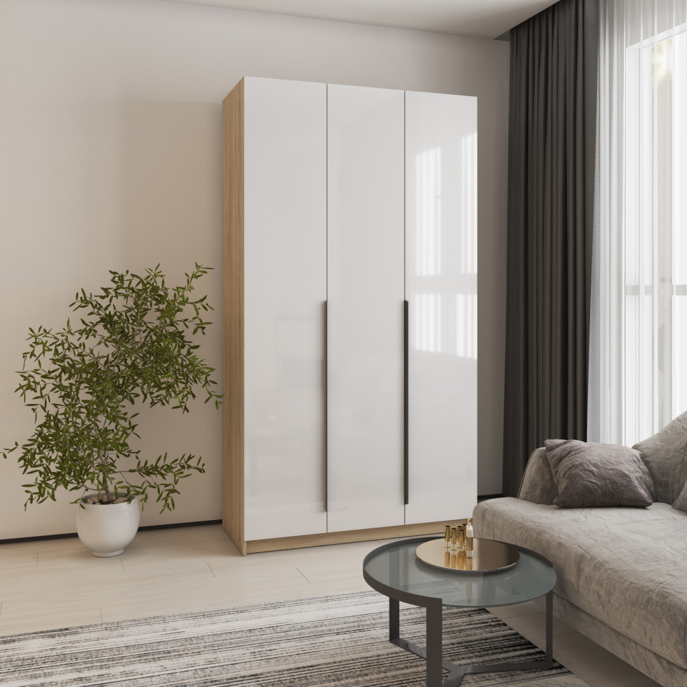 Шкаф 3-дверный MebelStar Оскар Gloss BL-B, 4 дополнительных полки 120x52x220 см Дуб сонома/Белый (MBS-5219)