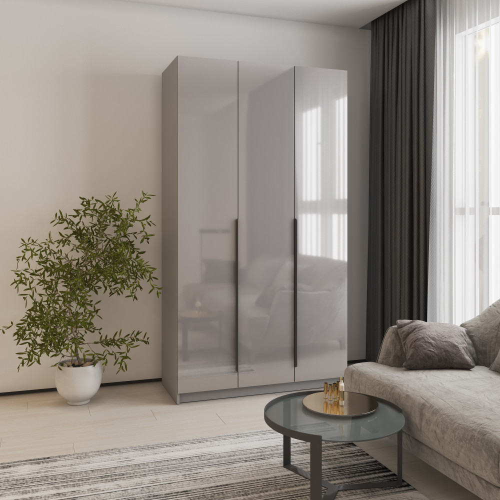 Шкаф 3-дверный MebelStar Оскар Gloss BL-B, 4 дополнительных полки 120x52x220 см Серая мышка/Серый (MBS-5218)