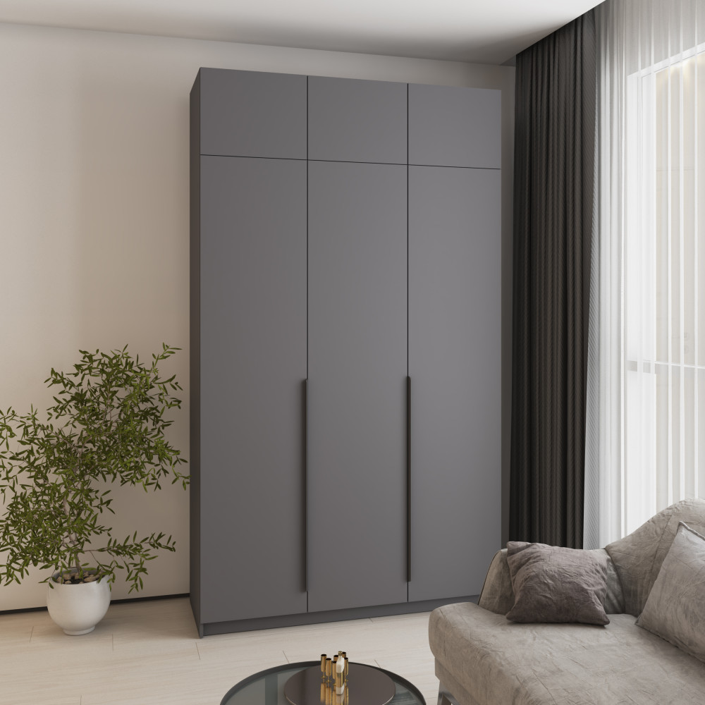 Шкаф 3-дверный с антресолью MebelStar Оскар ДСП BL-B, стандарт 150x52x260 см Антрацит (MBS-4930)