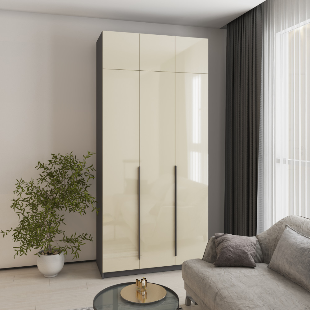 Шкаф 3-дверный с антресолью MebelStar Оскар Gloss BL-B, стандарт 120x52x260 см Антрацит/Альмонд (MBS-5417)