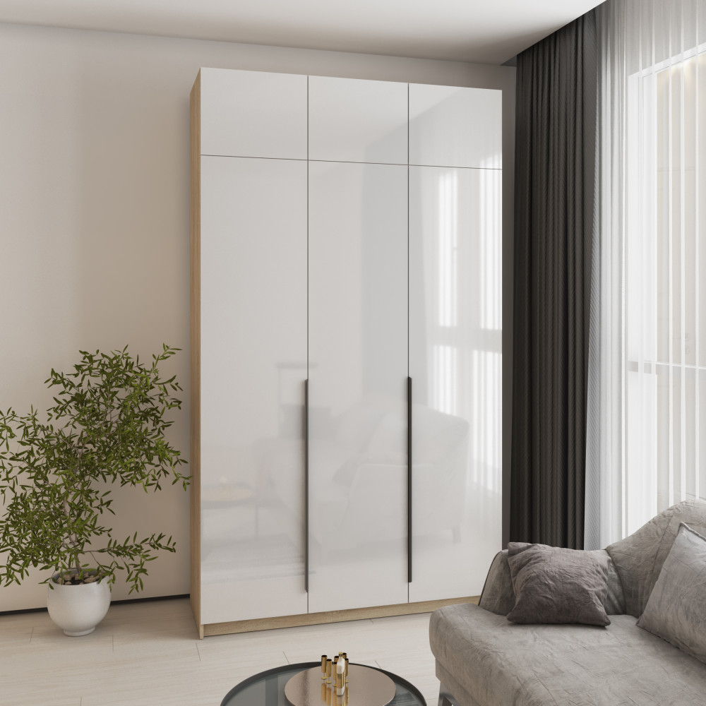 Шкаф 3-дверный с антресолью MebelStar Оскар Gloss BL-B, стандарт 150x52x260 см Дуб сонома/Белый (MBS-5464)