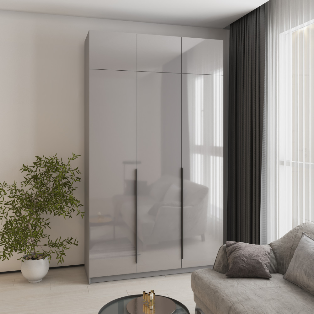 Шкаф 3-дверный с антресолью MebelStar Оскар Gloss BL-B, стандарт 150x52x260 см Серая мышка/Серый (MBS-5463)