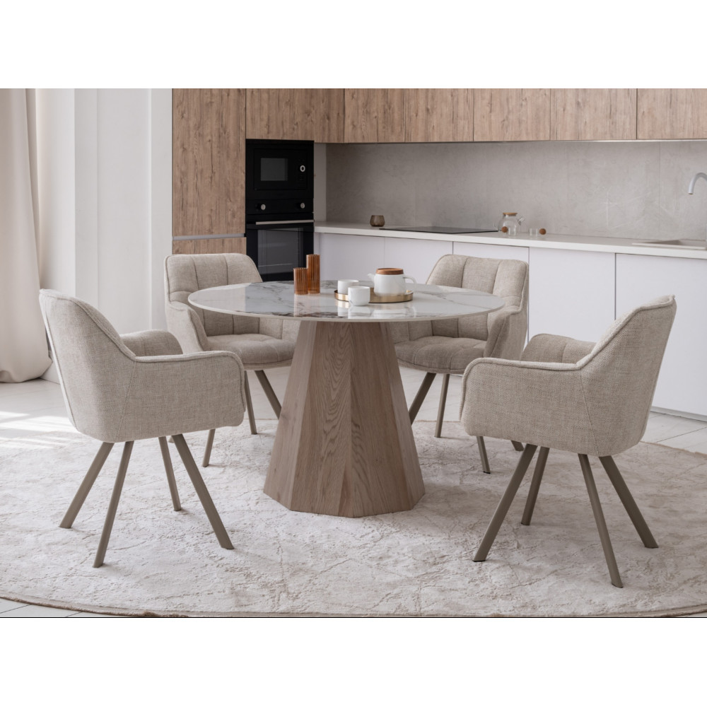 Обеденный керамический стол Vetro Квинто TM-300 — стильный и функциональный обеденный стол для кухни или гостиной, созданный для современных интерьеров. Круглая форма стола способствует уютной атмосфере и удобному расположению за столом, делая его идеальным для обеденной зоны или приёма гостей.