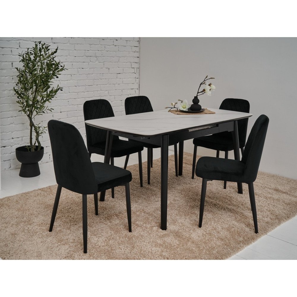Обеденный керамический стол Vetro TM-76 Белый мрамор/Черный (VTR-1194)