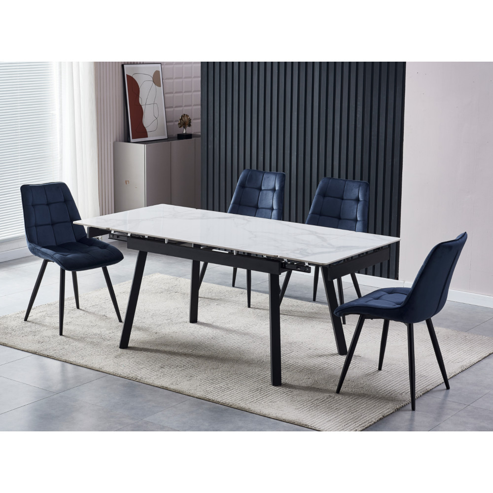 Прямоугольная форма столешницы придает столу строгость и элегантность, а сочетание керамики и МДФ обеспечивает высокую прочность, устойчивость к царапинам и воздействию влаги. Поверхность легко очищается, что делает обеденный стол с керамической столешницей практичным решением для повседневного использования.