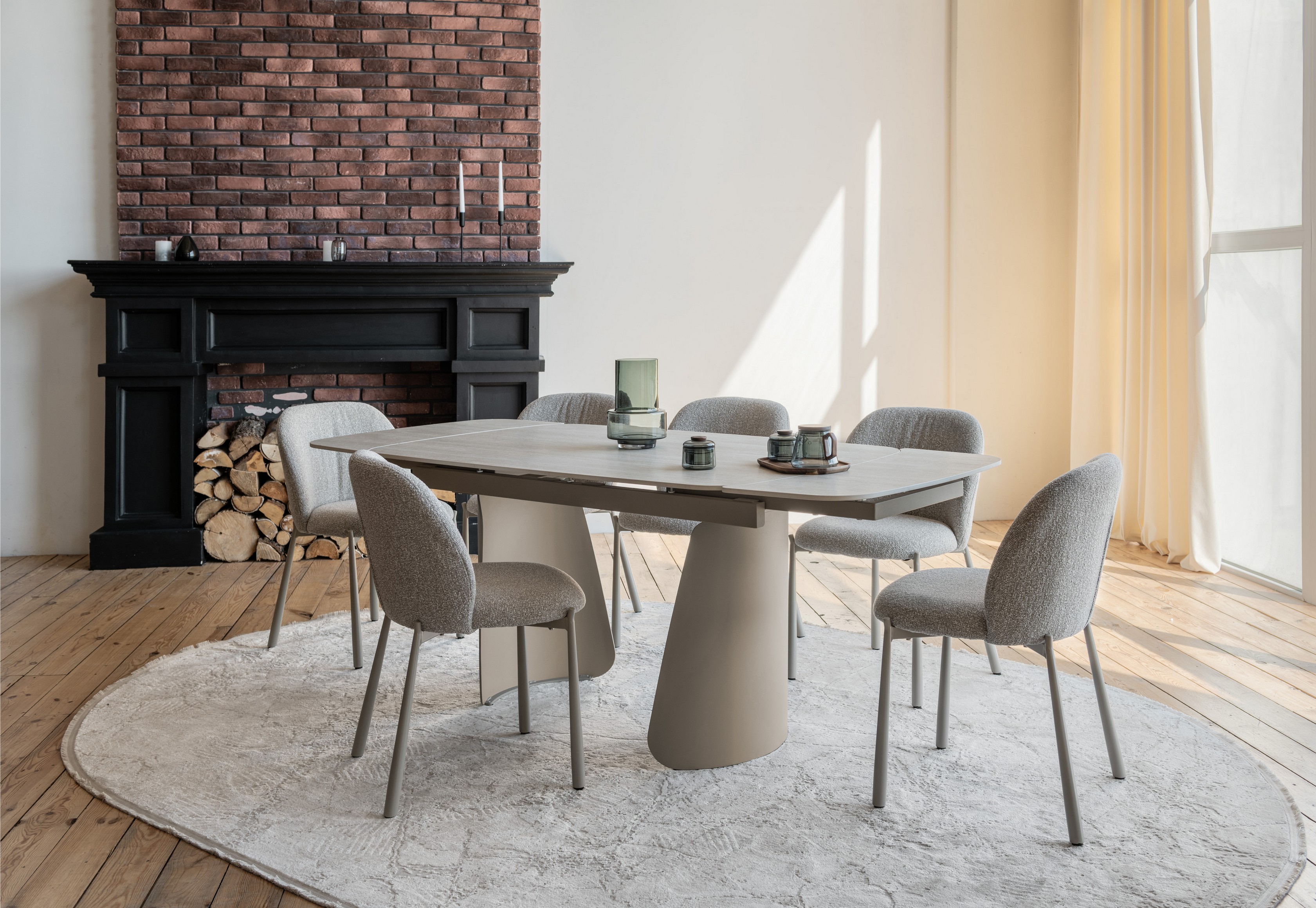 Обеденный керамический стол Vetro Лунарио TML-1322 Клауди грей/Айвори (VTR-1246)