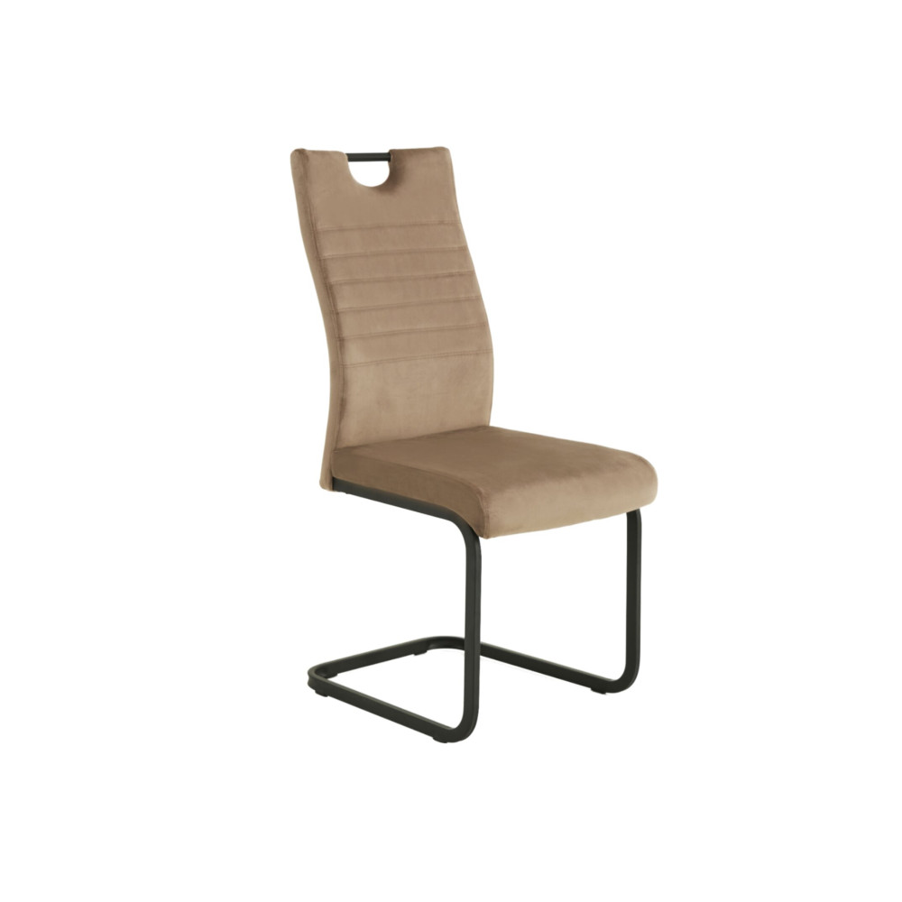 Основание стула изготовлено из прочного окрашенного металла, что обеспечивает устойчивость и долговечность конструкции. Мягкая велюровая обивка дарит приятные тактильные ощущения и придаёт изделию утончённый внешний вид.