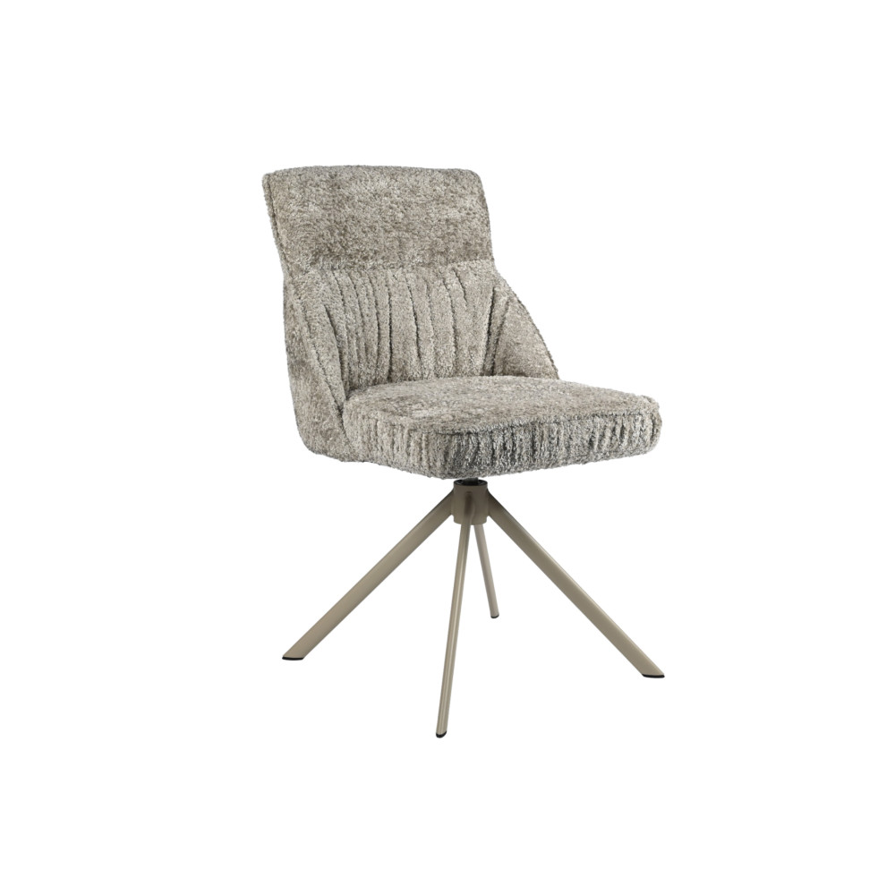 Vetro R-168 — современное поворотное кресло с обивкой из мягкого букле, создающей уютную текстуру и приятные тактильные ощущения. Металлическая основа обеспечивает надежность конструкции и устойчивость изделия.