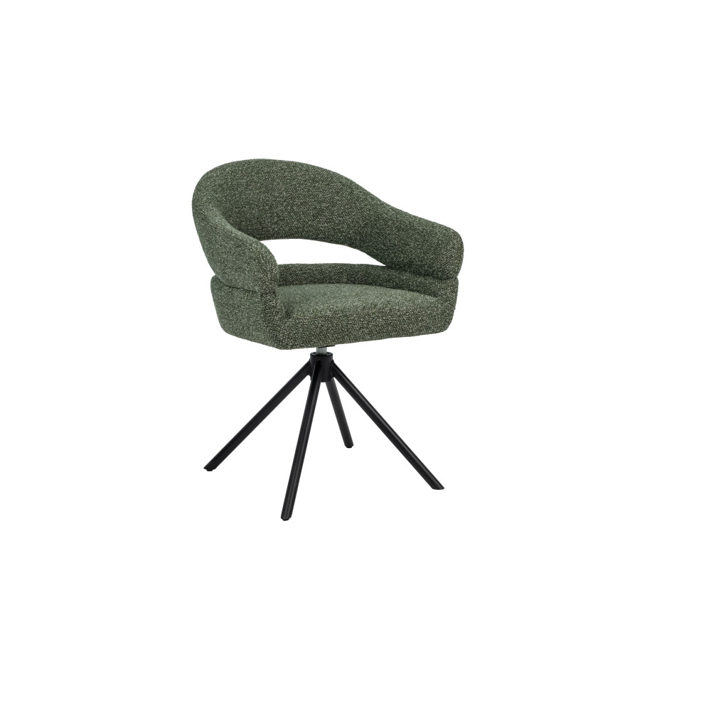 Поворотный стул Vetro R-180 в сочетании оттенков зеленого мха и черного — это стильное и функциональное решение для современного интерьера. Модель создана для максимального комфорта: мягкая обивка из букле приятна на ощупь и добавляет уюта, а прочное окрашенное металлическое основание обеспечивает стабильность и долговечность.